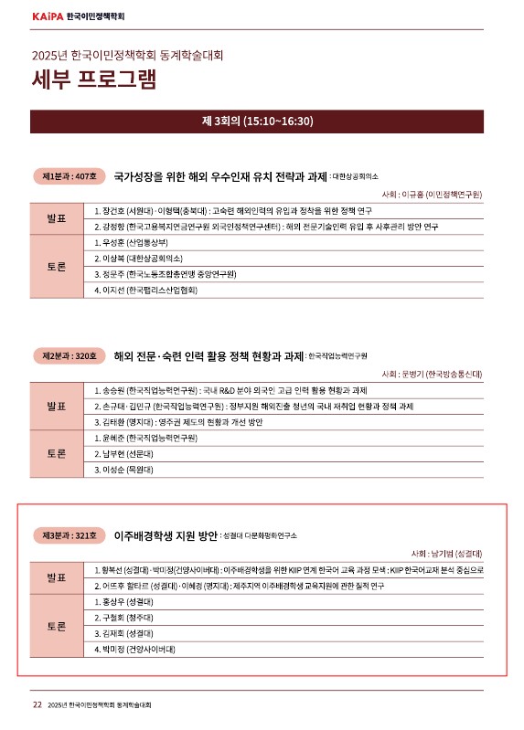 [학술행사] 2025년 한국이민정책학회 동계학술대회 최종 프로그램 안내(2025.12.19)